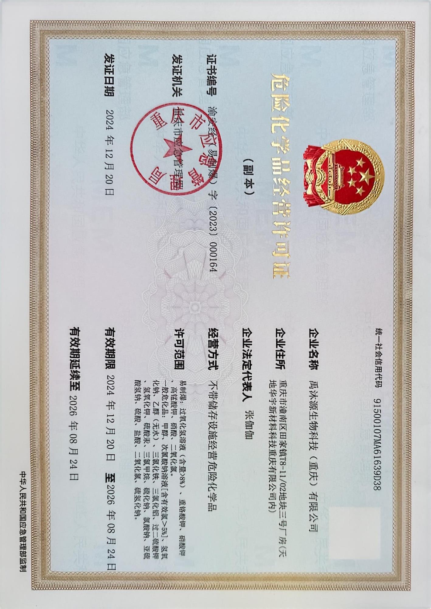 危险化学品经营许可证